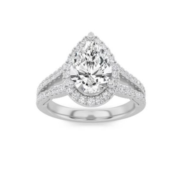 Classic Center Round 3 Stone with Side Pear Stones Engagement Ring